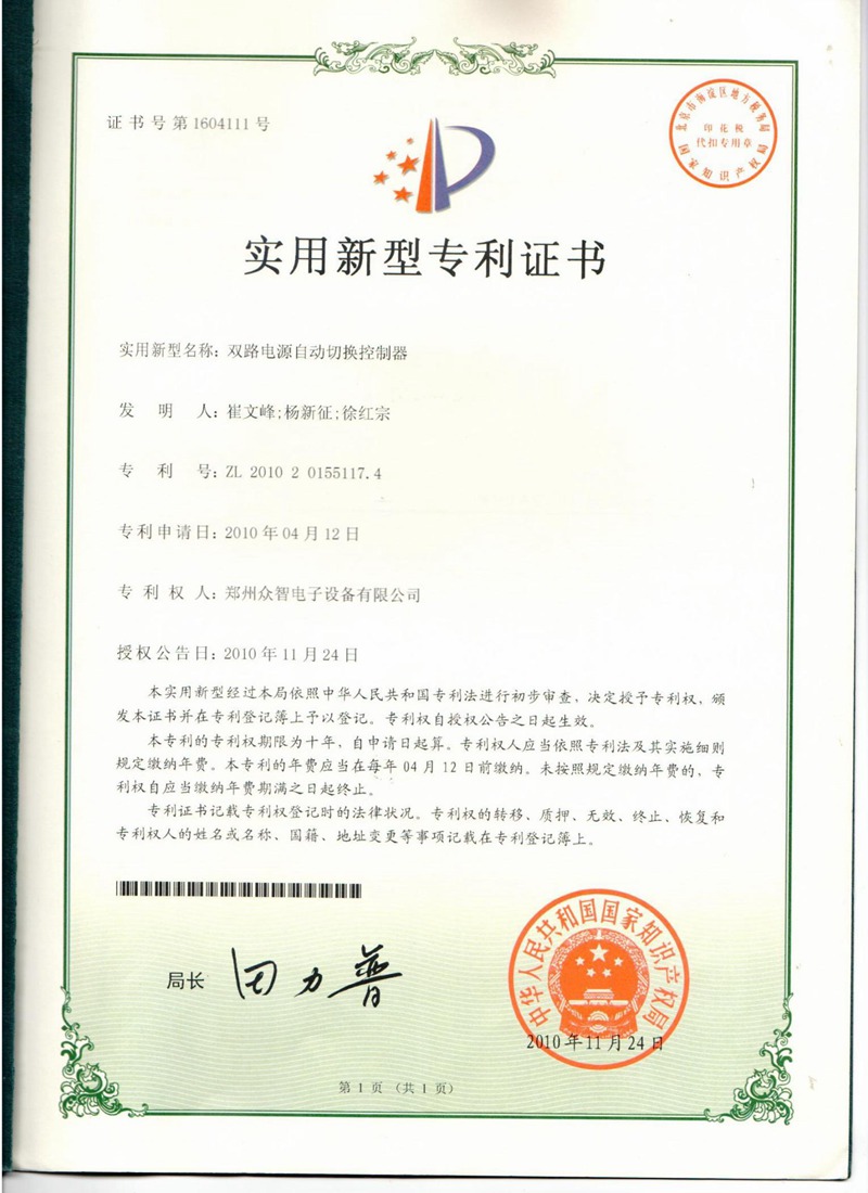 首 頁(yè) >> 資質(zhì)證書 >> 專利證書